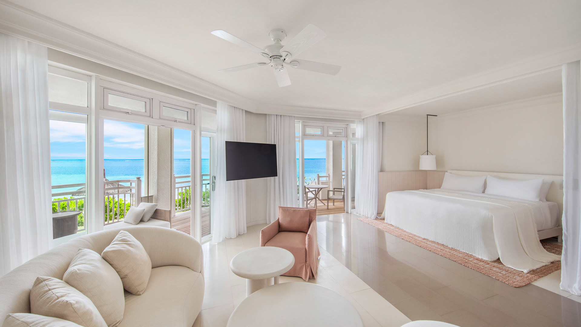 Ici, tout est pensé dans le seul but de vous offrir une bonne nuit de sommeil. Vous trouverez un large choix de suites et de villas, certaines adaptées aux familles et d’autres spécialement axées sur le bien-être. Toutes sont conçues pour ressembler à des bungalows de plage aux couleurs douces, rehaussées par des touches de corail et de jaune citron. La beauté se trouve dans les détails. Un exemple ? Les tables sont moulées avec du sable par un artisan local. Toutes les suites disposent de terrasses extérieures ou de balcons pour profiter de la douceur de vivre à la mauricienne.